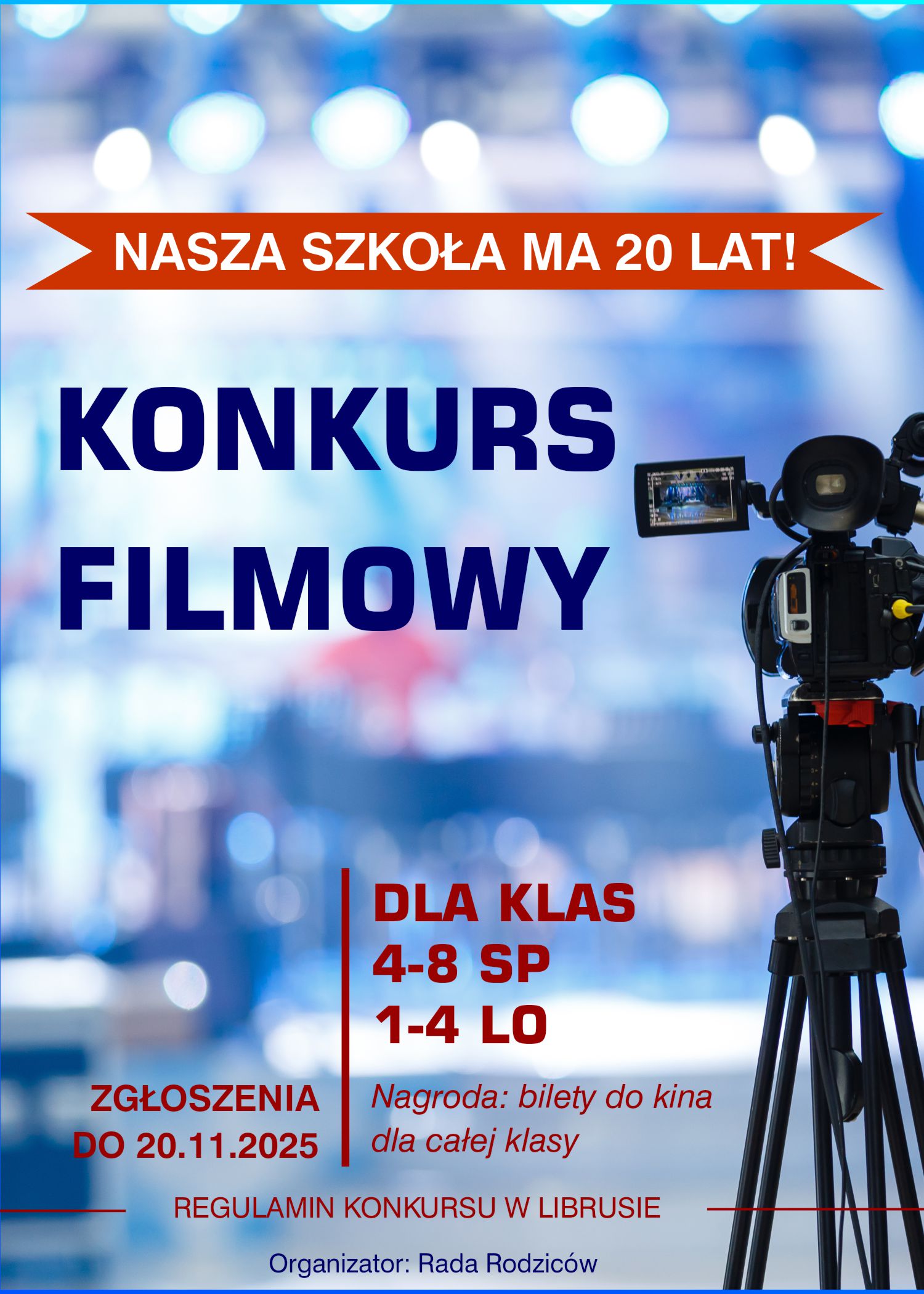 Z okazji 20-lecia istnienia naszej szkoły zapraszamy uczniów do udziału w wyjątkowym konkursie filmowym.