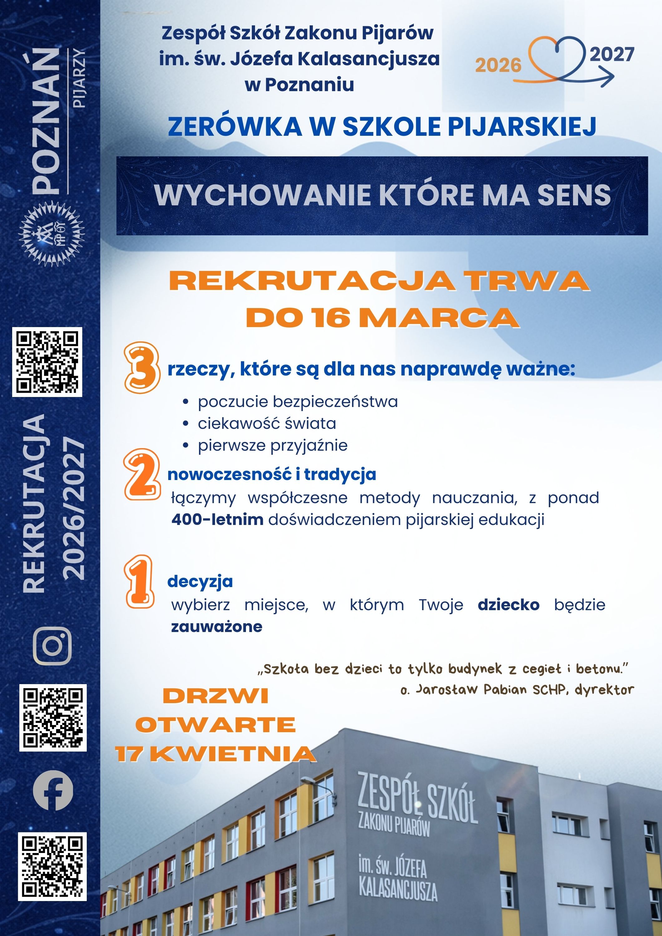 Dlaczego warto wybrać naszą szkołę? Decyzja, która procentuje: Wybierasz miejsce, w którym Twoje dziecko poczuje się ważne i docenione. Nowoczesność i tradycja: Łączymy innowacyjne metody nauczania z ponad 400-letnim doświadczeniem pijarskiej edukacji.