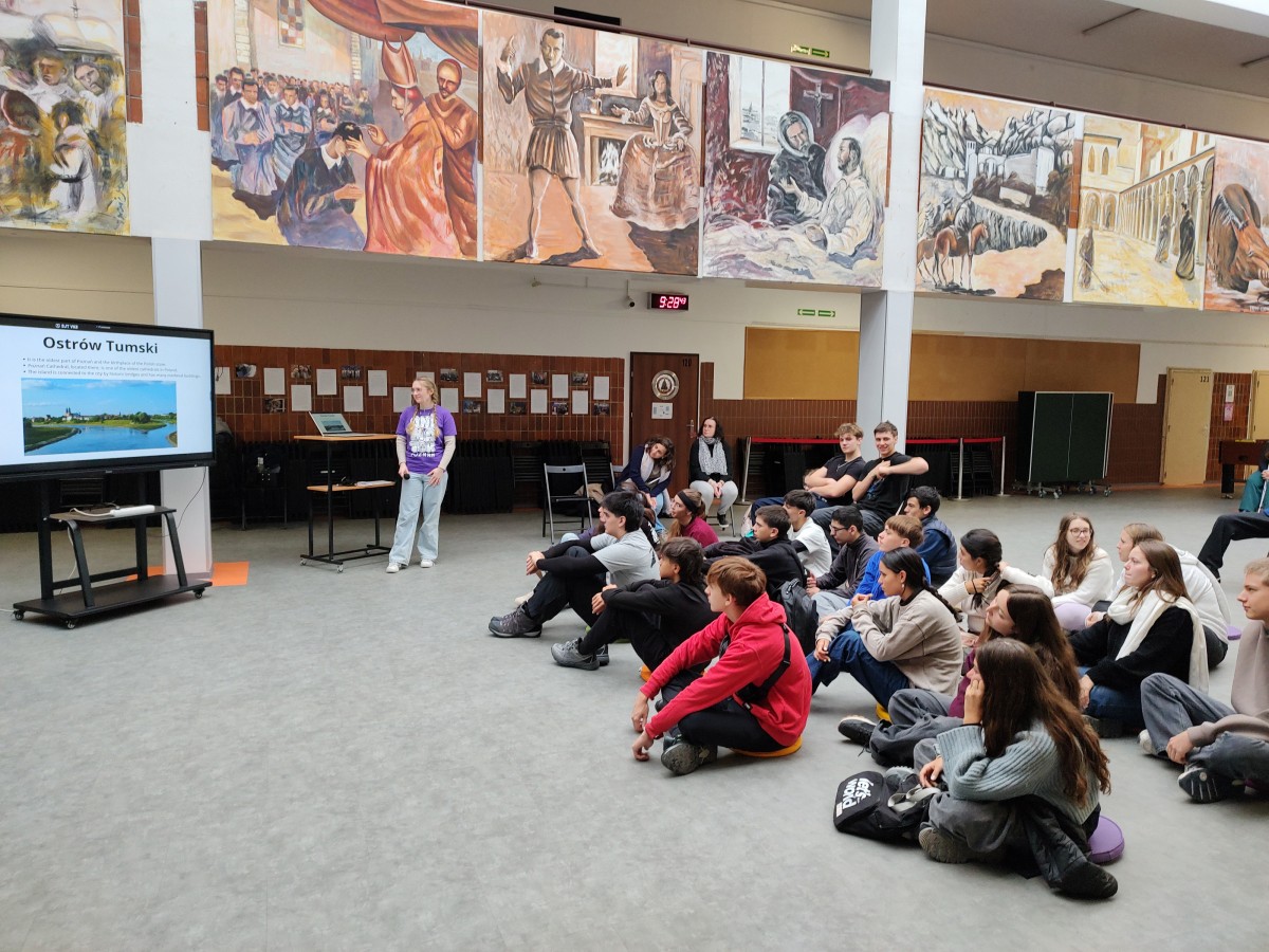 Wtorek rozpoczęliśmy wspólną Eucharystią. Następnie odbyło się oficjalne powitanie przez dyrekcję i uczniów oraz prezentacja o Poznaniu. Kolejnym punktem programu były warsztaty tańca i śpiewu – uczyliśmy się nawzajem piosenek i kroków, przekonując się, że radość nie potrzebuje tłumacza. Po obiedzie udaliśmy się tramwajem na Stare Miasto. Zwiedziliśmy Muzeum Sztuk Użytkowych i spacerowaliśmy po poznańskiej starówce.