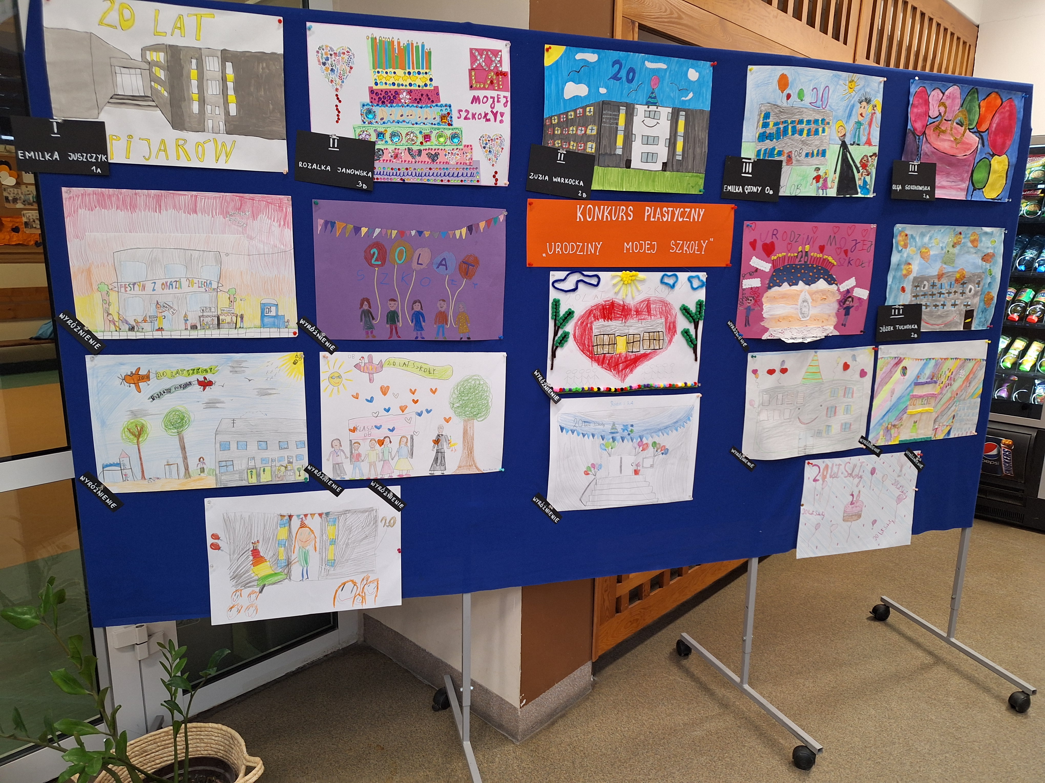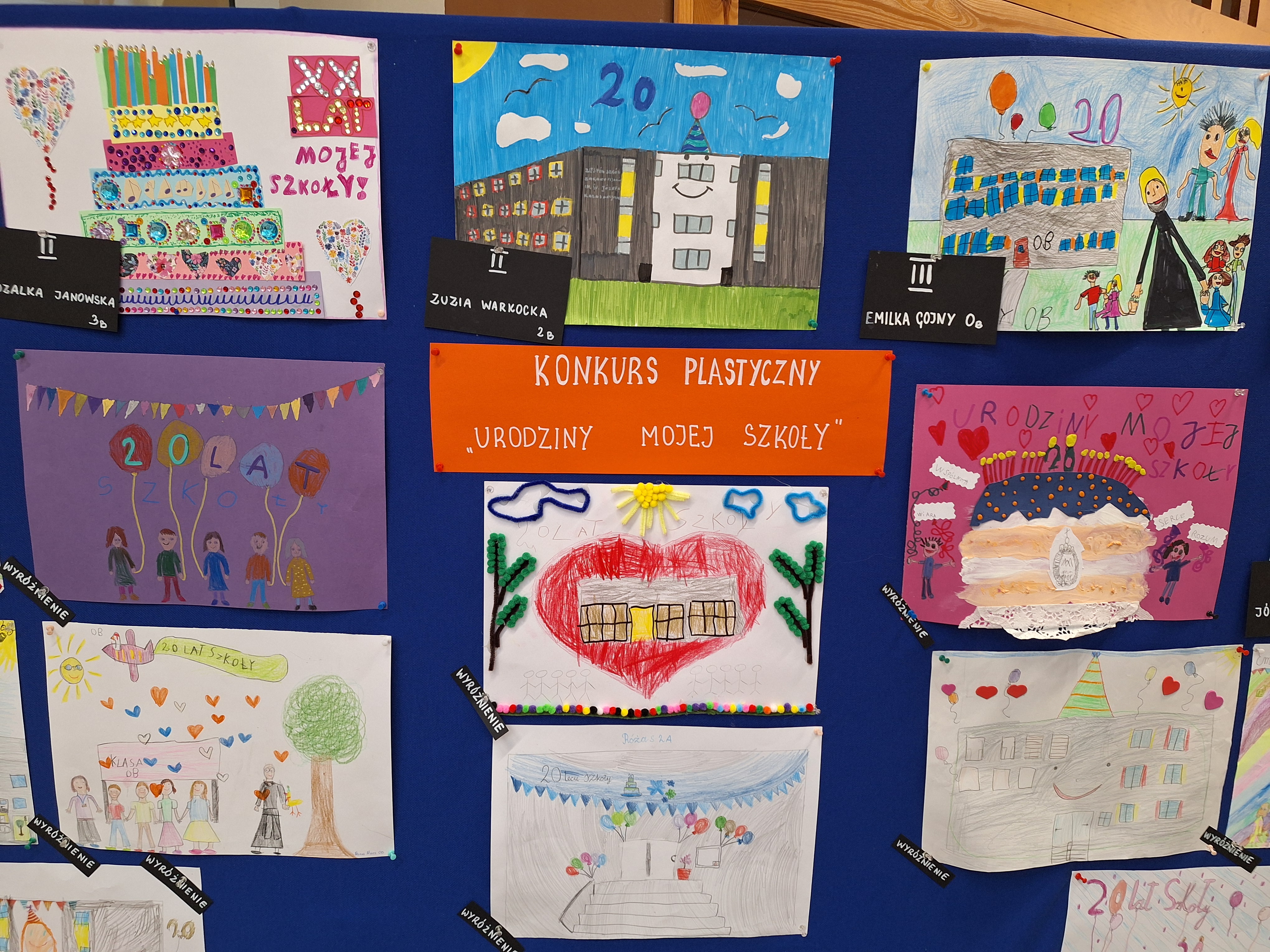 Dziękujemy wszystkim młodym artystom, którzy wzięli udział w konkursie i podzielili się z nami swoim spojrzeniem na 20-lat naszej szkoły. Powstało wiele pięknych, kolorowych i niezwykle pomysłowych prac — pełnych wspomnień, radości i szkolnych historii zapisanych kredką, pędzlem i wyobraźnią.